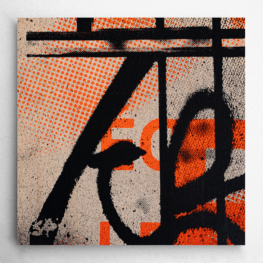 Sérigraphie artisanale noire et orange fluo.